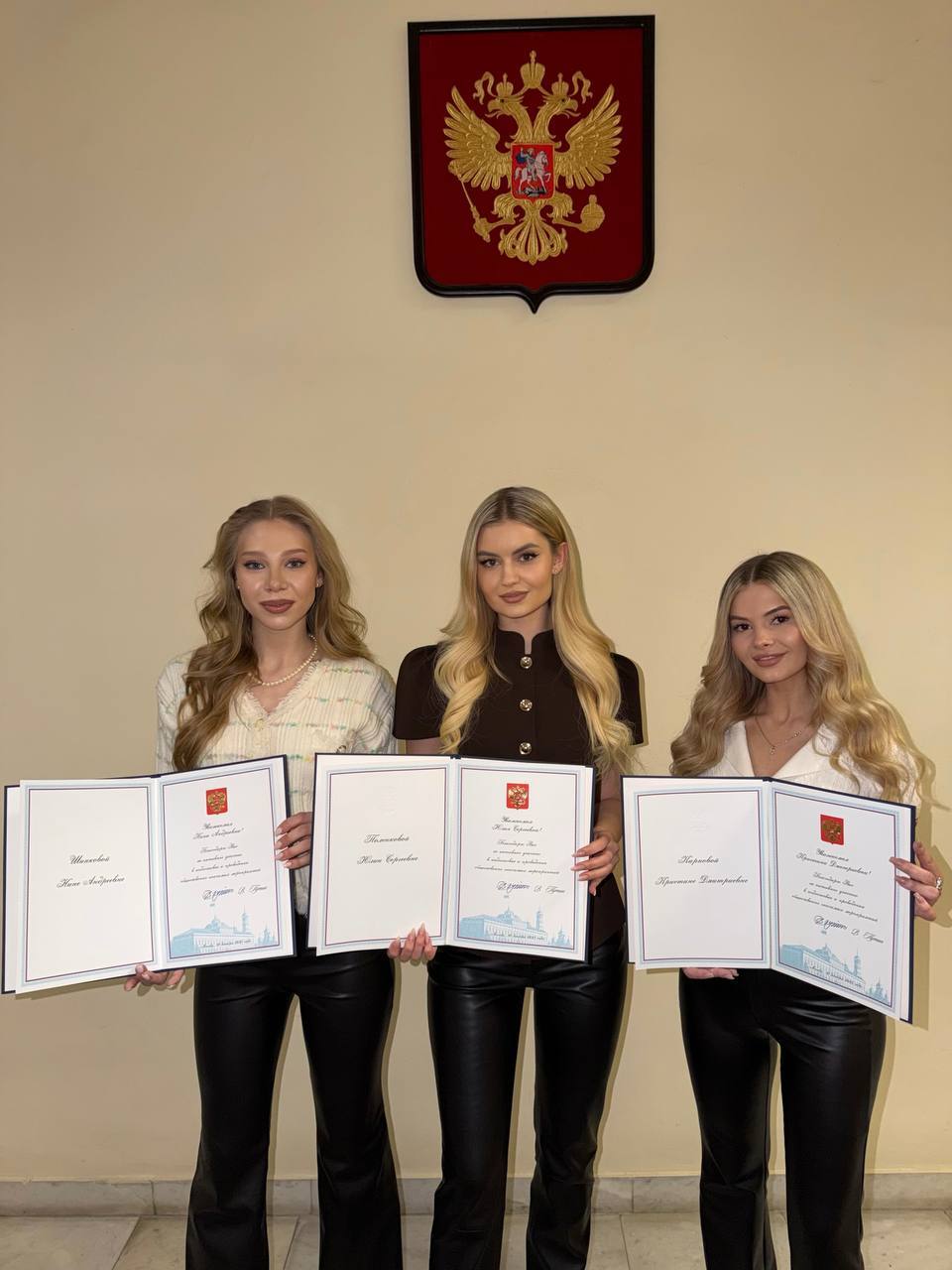 В Администрации Президента Российской Федерации состоялась торжественная церемония, в ходе которой солисткам вокального ансамбля «Катюша» были вручены Благодарственные письма от Президента России Владимира Владимировича Путина. Высокая оценка деятельности коллектива выражена за активное участие в общественно значимых мероприятиях, проведение концертов в зоне проведения специальной военной операции и весомый вклад в благотворительную деятельность.